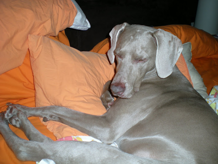 Enjoying William Wegman and his famous photos of his Weims, I started researching this breed. I kept reading over and over - "strong willed", "fiercely loyal", "high strung", and "needs lots of exercise". For some crazy reason I decided this was just what I needed! I love to exercise, and the park was close by my house so I had that one covered. I wanted a loyal dog, so that was easy. And the strong willed was good in that I didnt want some lapdog or scaredy cat! The high strung part was a little unsettling, but I figured I would be a great mom and could remedy that situation if it became an issue.